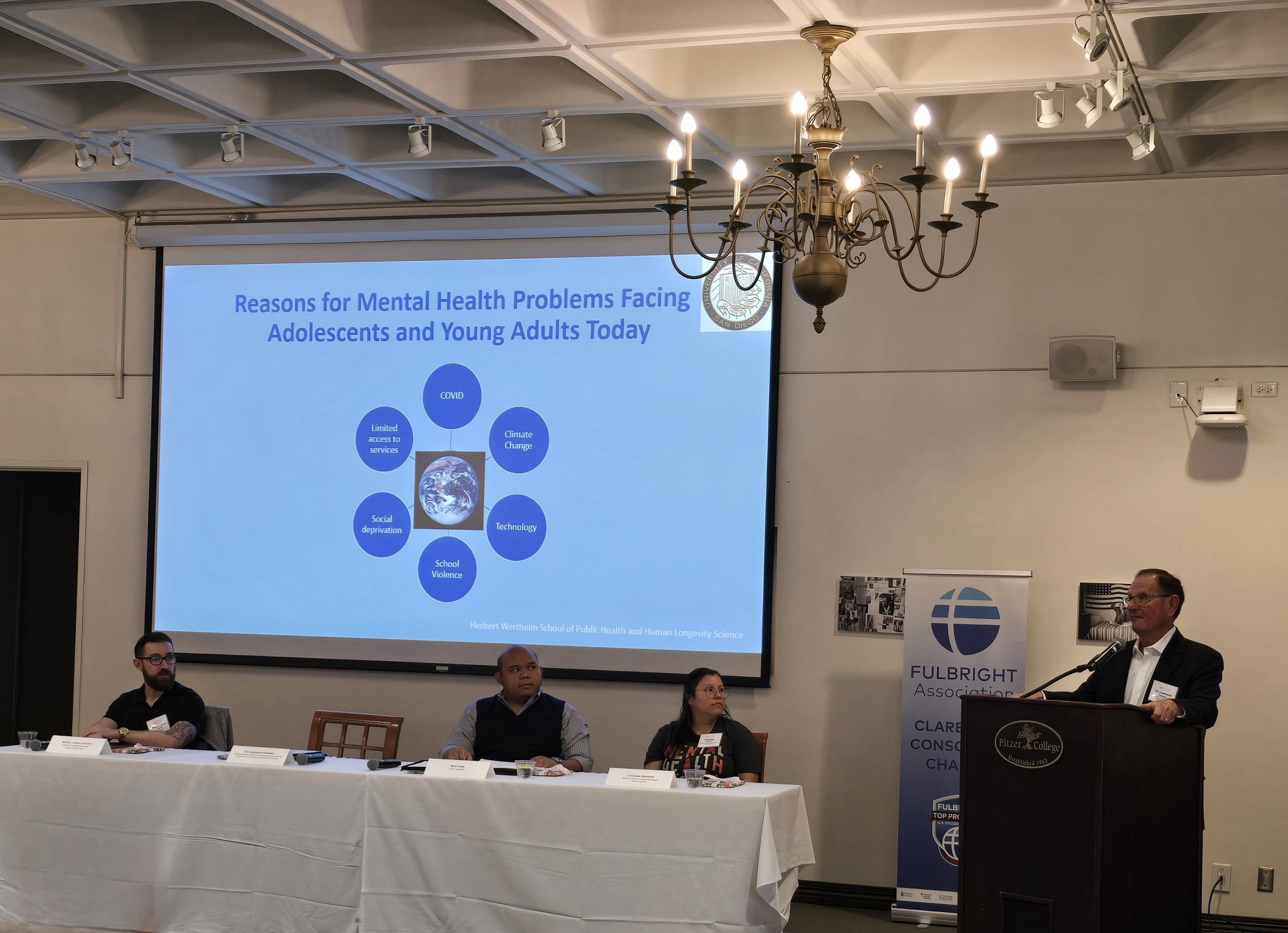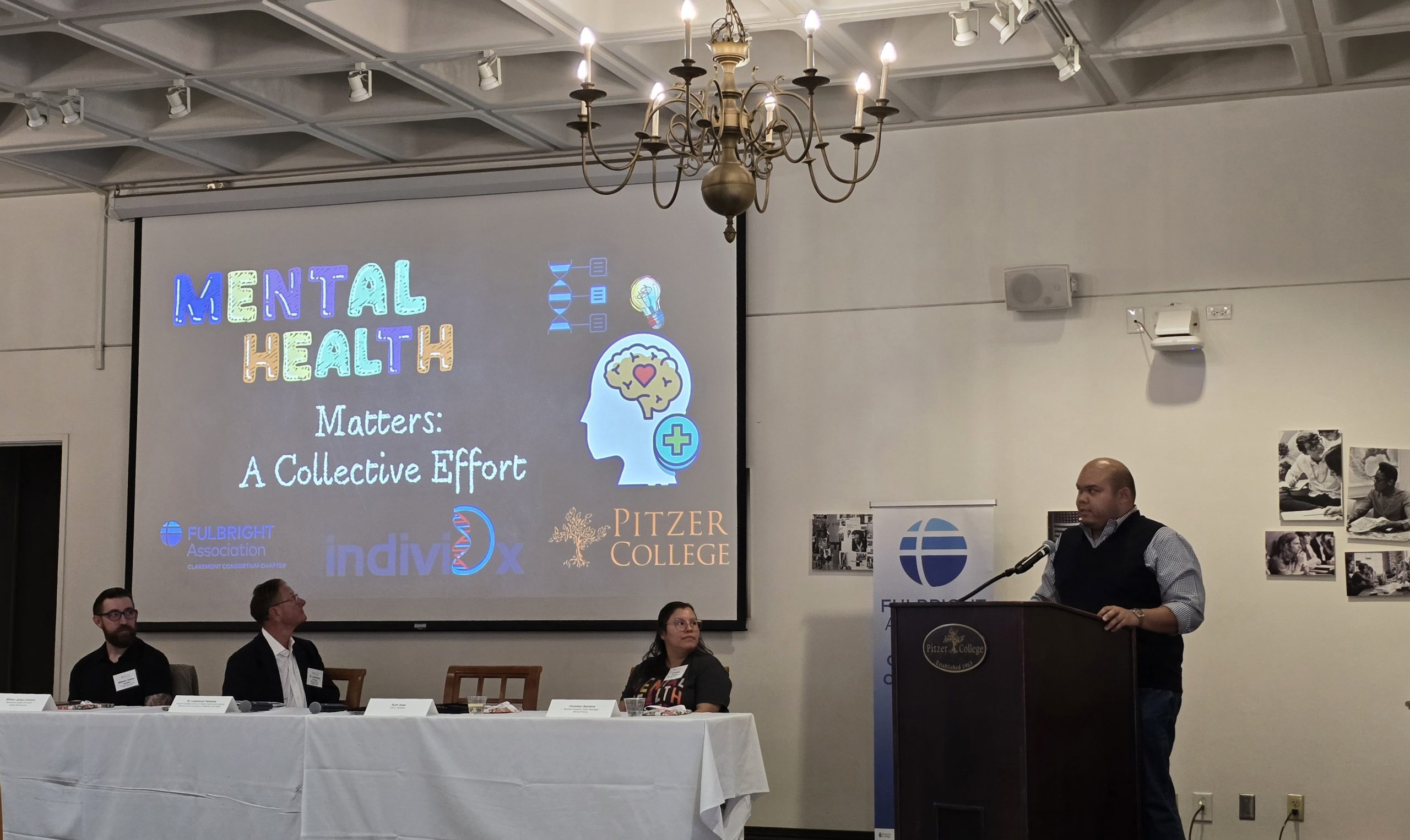 The Speaker Forum on Mental Health Matters: A Collective Effort brought together parents, faculty, and students of the Claremont Colleges and Fulbright Alumni for a collaborative effort to highlight the discussion of mental health during World Mental Health Day! The speakers explored a broad range of topics from genetics for the betterment of mental health, crisis management, youth mental health, and the dynamics of the parent-student relationship. Dr. Lawrence Palinkas discussed youth mental health in our evolving world and how factors such as COVID, climate change, technology, school violence, social deprivation, and limited access to services have greatly affected mental health. Kurt Jose, Founder & CEO of IndiviDx, a biotech laboratory specializing in personalized medicine, discussed how mental health management can benefit from being personalized and precise. He believes mental health care should be guided by the individual’s data. William Johnson, a clinician from Kaiser Permanente, elaborated on how parents can properly prepare students for crises, disasters, and unknowns, as well as preparing them for the transition to adulthood. Christian Santana, a student case manager, highlighted the Strive2Thrive program at Pitzer College and its mental health services. Overall the event opened several new discussions and informed the families with the tools needed!