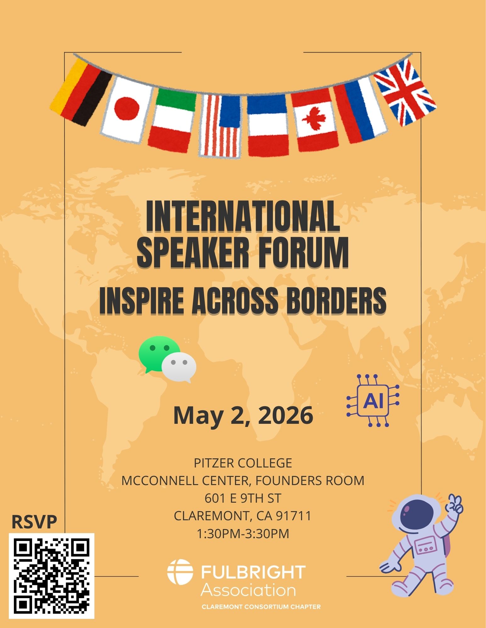 You’re invited to the Claremont Consortium Chapter’s launch event for networking with the Fulbright community and discovering ways to become active participants. You can enjoy tasty bites and refreshing drinks, and then spend the rest of the day networking and exploring Claremont Village.